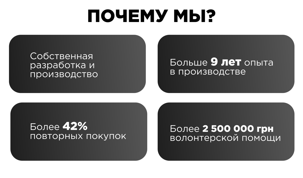 Компанія розробляє аксесуари для модернізації квадрокоптерів, які розширюють їхні функціональні можливості та підвищують стійкість до навантажень.